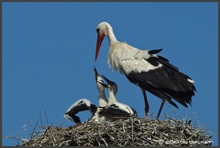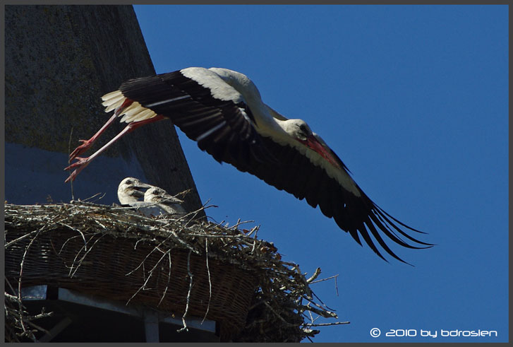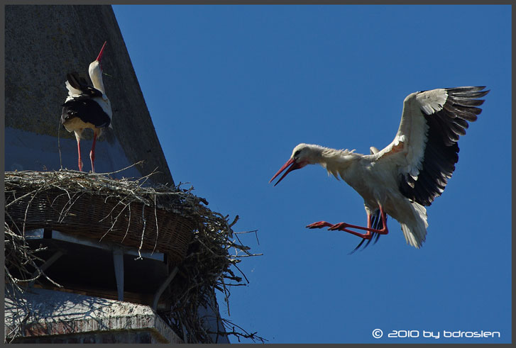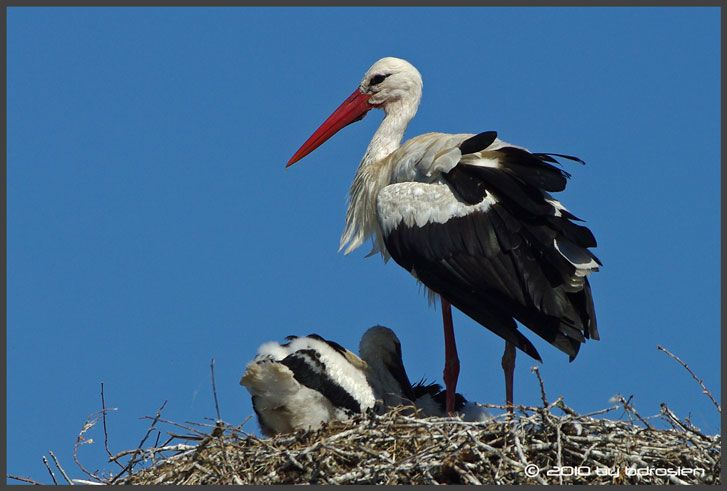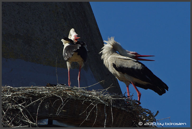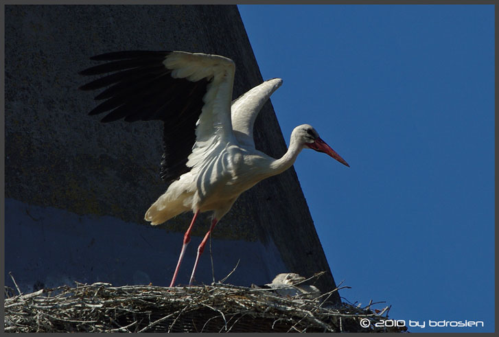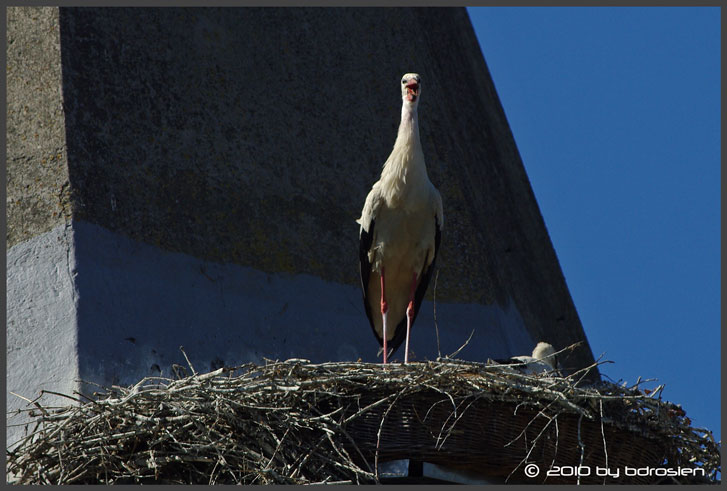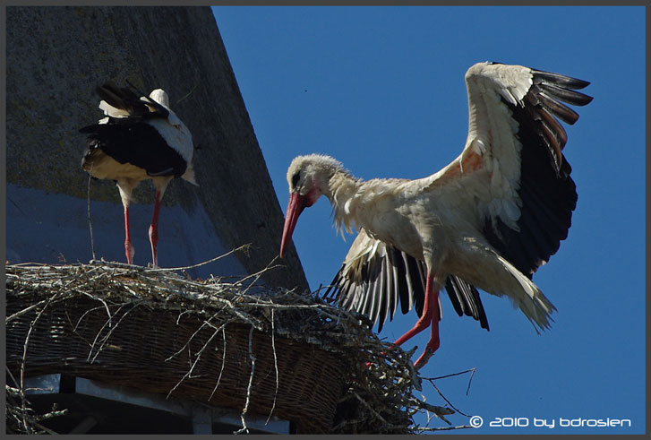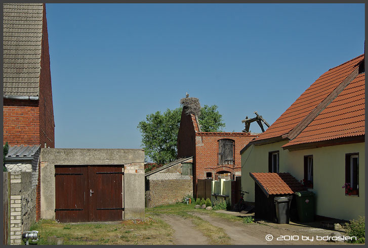 Storchenjahr 2010 --> Brandenburg --> Havelland --> Gülpe - 28.06.2010 Bilder mit diesem Symbol Nest 1 - Und sie halten immer noch - Mauer und Horst. Ein "sicherer Platz" um zwei Küken groß zu ziehen.